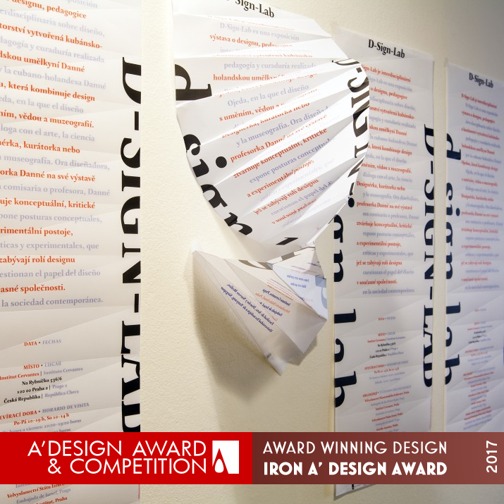 RESEARCH ABSTRACT: The main objective was to create a poster that while it was promoting an exhibition on art, design and science, would visually act as a metaphor for the essence of this exhibition. DNAs carry the esencial genetic human "codes", thus, the poster acts likewise by communicating the essence of the exhibition D-Sign-Lab, and by clearly visualizing its paper body structure as a DNA. With regards to the production process, it was also important to experiment with a translucent paper that could support the three dimensional DNA origami structure. In this regard, the reader would have to approach and interact with the poster as a sort of "mobile sculpture", in order to decipher its message.