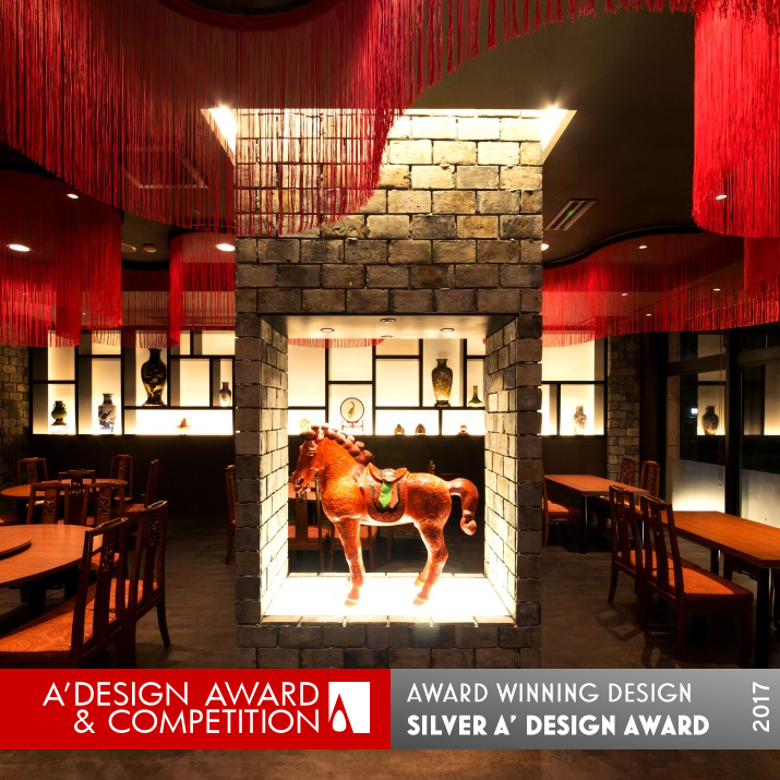OPERATION / FLOW / INTERACTION: Proceeding from outside the restaurant to inside the main dining room gives an insight of some Chinese cultural heritage. A hybrid Japanese-Chinese garden makes a smooth transition from the Japanese urban atmosphere to the Chinese interior announced by two terracotta warriors. At the dining room entrance stands the Red-Hare sculpture inside a display made in Shanghai-bricks and lightened up from below. The display is also open to the background display of some of the finest Chinese ceramics.
