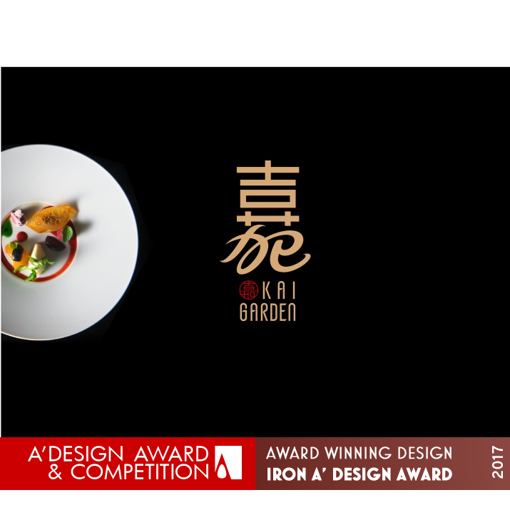 INSPIRATION: Cantonese dishes have opulent meanings and absorbs Western cuisines features. We tried to present a combination of modernity and tradition as well as an infusion of the East and the West. By summarizing the common features of Chinese characters 嘉 and 苑, we utilized isomorphic form to transit from up to down. Such form is the optimal expression in communicating infusion. To reflect Cantonese dining culture features, we referred to Chinese calliggraphy in creating 苑(yuàn).