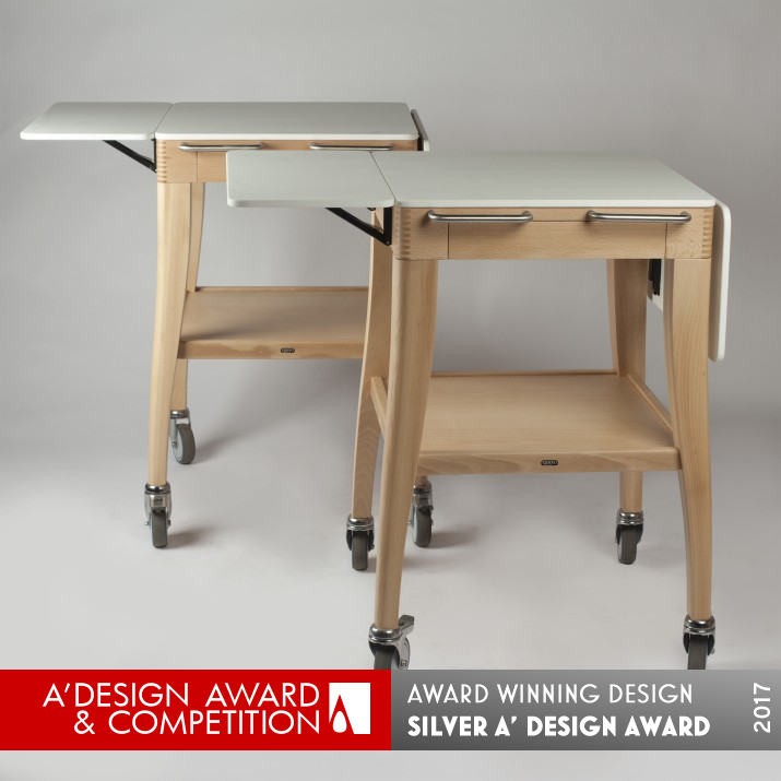 Km31 is truly an impressive design. Its multifunctional capabilities are remarkable, allowing for spectacular actions such as cutting big fish or poultry, setting crepes alight, or presenting an anniversary dessert. Its dimensions are also perfect for running easily in the aisles of restaurants, and the fact that several carts can be lined up for a buffet is an added bonus. The attention to detail that went into the design of this trolley is remarkable, and the special finishing on the reclinable hinge folding support of for the flaps is a testament to the craftsmanship that went into this product. The fact that it is made of solid beech and waterproof scratch-resistant solid surface makes it a durable and stylish piece of furniture. Km31 is an impressive design that is worthy of the A' Furniture Design Award.