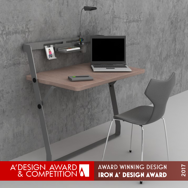 UNIQUE PROPERTIES / PROJECT DESCRIPTION: Octavo is a home office concept designed to be able to function as soon as unboxed, without the need of any assembly process. As a solution for creating workspaces in small living environments, Octavo proposes a portable worksurface leaned on the wall.