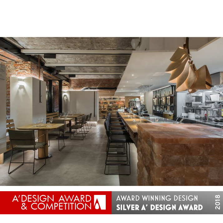 CHALLENGE: The hardest thing was to make this single space restaurant not boring and cozy. The center composition from the salt bricks and the shrimp lamp under it was a problem to come up with also. The other problems was the ceiling and engineering, how to make it invisible, because it was not possible to touch the unique arches.