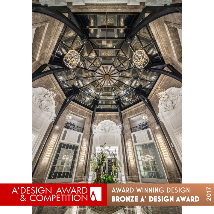 CHALLENGE: Original structure has no skylight in the center of the building. In order to bring large influx of sunlight into the inner building, we took a courtyard space concept found in Southern China local architecture to create a 14 meters height dome with skylight. Not only it gives the space a sense of grandeur, but also it allows ample natural light to be shone through.