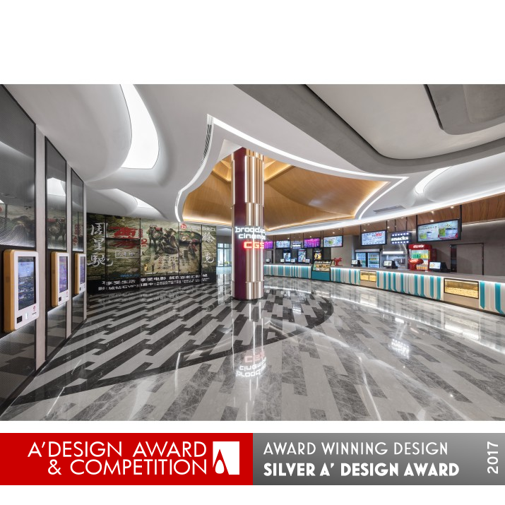 INSPIRATION: While entering the tent of the circus, the very first thing comes into the sight is the enormous column that support the tent. The luminous “lines” and wordings that extent from the column, in addition with the tent ceiling that radiate from this point, are telling customers this is the cinema that tells stories by its beats.
