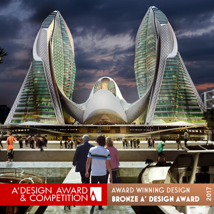 INSPIRATION: The eye-catching form of the building comes from the Feeling of rice growing when rice seed shows itself and comes out form its skin. This rising feeling is mixed with the seagull wings on ground when preparing itself to start flying dance in the sky. From the top floors you feel moving on the lotus leafs. The major view of building imagines the Lilium flower which always appears with tow buds. The goal is to bring a sense of purity and freedom as symbol of the lilium to customers.