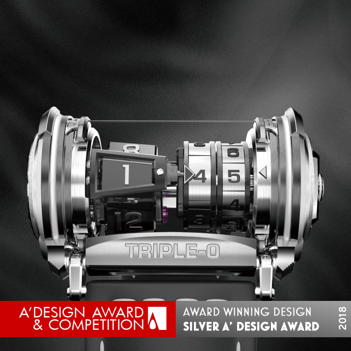 UNIQUE PROPERTIES / PROJECT DESCRIPTION: TRIPLE-O is a multi-disciplinary design in cooperation with Watch Company in China. The main innovation of TRIPLE-O is movement, time readings, crown mechanism and modeling design. The planetary gear system of three planet gears in movement innovation makes time readings distinctive. The separation of hour and minutes makes recognition and reading much easier. The crown mechanism is based on the ball pen alike structure to achieve the convenience of operation. Meanwhile, the modeling design is inspired by Lelord triangle.