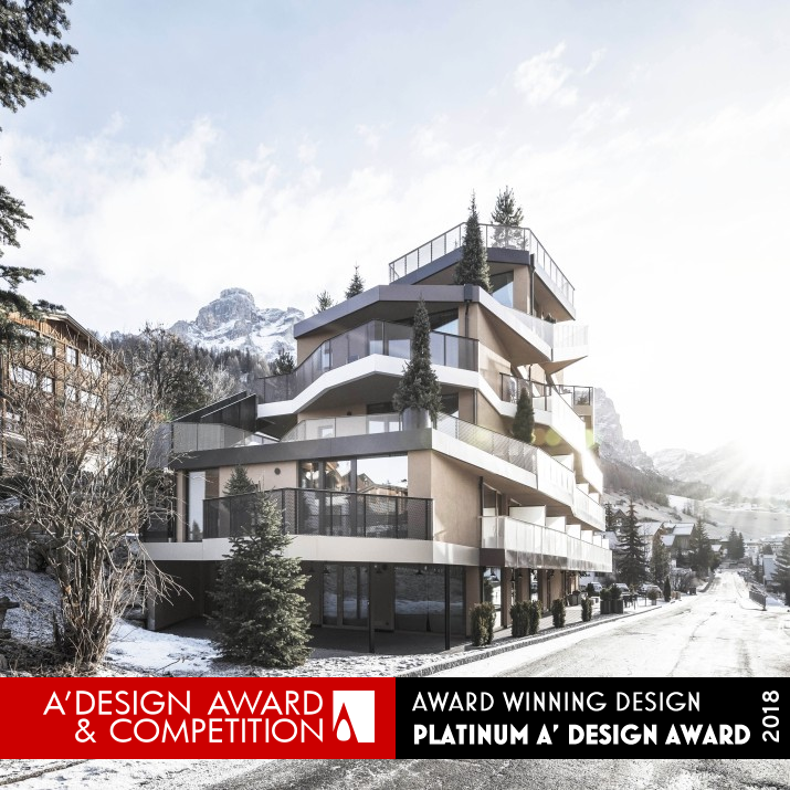 RESEARCH ABSTRACT: The interior design follows the alternating natural landscape of the Badia Valley: furniture and sofas in blue, green and brown tones suggest alpine meadows, biotopes, moss forests or rock caves.