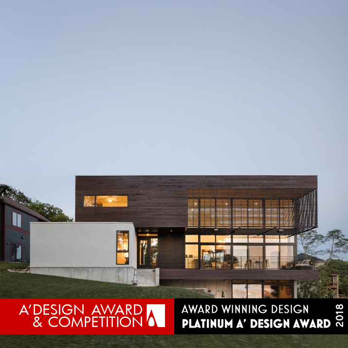 INSPIRATION: The concept draws from the owner’s passion as a commercial photographer and the process of capturing an experience with a still photo. The house is two simple platonic forms, one resting on the other, pulled apart to create an aperture to the lake. The view is revealed once you enter the house, leaving the city behind and immersing yourself in lake living.