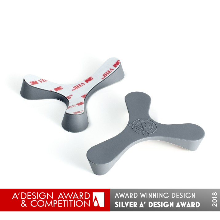 RESEARCH ABSTRACT: Type of investigation: Search for stability through an external gadget under the following conditions: find a single piece that offers maximum stability in the smallest possible size and thickness that is also aesthetically pleasing.Research objectives: investigate the shape of the gadget, its dimensions, materials, adhesion, durability, hardness & investigate the ideal adhesive. Finally to find the most suitable packaging.Methodology: Trial and error manufacturing pieces in plasticine, silicone and prototypes in 3d, Pvc, Pur, tpu, Nbr or Silicone…based on three points of support inspired by the principle of Euclid.Data collection and research tools used: Participants and experiments: Luis Moure, realization of the first prototypes. Cardet Plastics , mold manufacturing and injection testing and mold manufacturing for adhesive placement. Ramon Plastics,final injection production. Adhesives Fustier Barcelona 3m. Packaging, Del Rio cartons. Design of the piece, logo, slogan etc. Luis de Arquer. Technical realization of the design, Anna Huertas and Isc Plàstics.