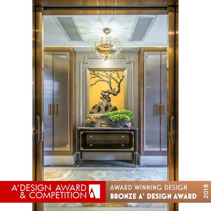 PRODUCTION / REALIZATION TECHNOLOGY: In terms of material application, alongside stone, agate in the master bathroom, and turquoise for the hallway, effectively elevate the quality, and the selection and application of genuine stingray skin, rose gold and shells lighten up the tonality. Classical European furniture well matched West-East combination in the fixtures and the details carry Chinese connotation, the Chinese palace roof shape on furniture for example. Leather, crystal and glass are frequently used with geometric shapes to convey modern flavor.