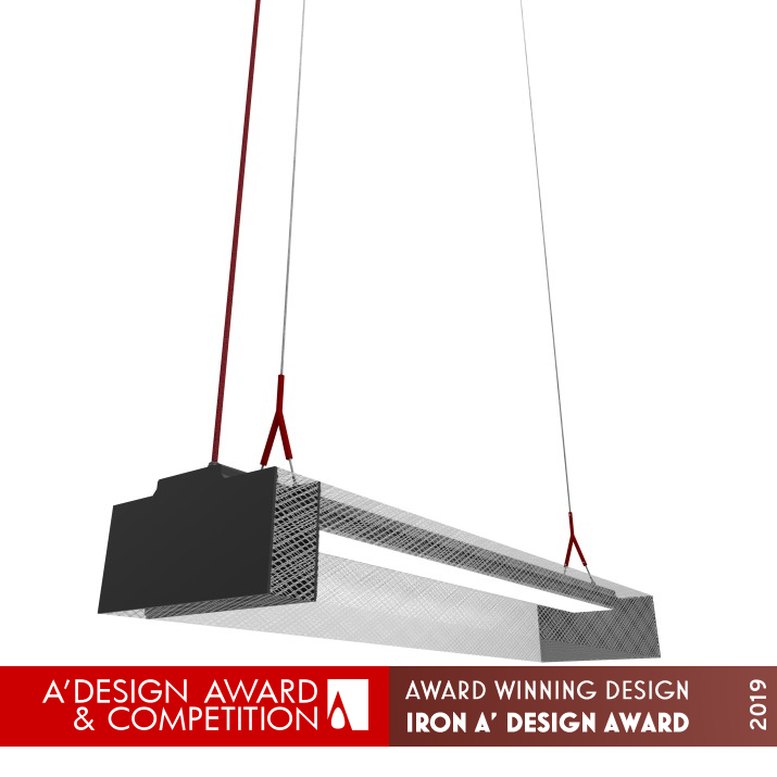 UNIQUE PROPERTIES / PROJECT DESCRIPTION: That is a luminaire whose main feature is its metal mesh with a membrane, that brings a sound-absorbing function and protection to its power supply from dust and dirt. It is designed with an ITEM 60 profile, so it provides different configurations, in order to adapt it to both industrial and office environment.Its suspension system has a regulator shaped like an 'Y', that facilitates its installation. Power supply is Oled, it is complemented with accessories to accommodate emergency luminaries