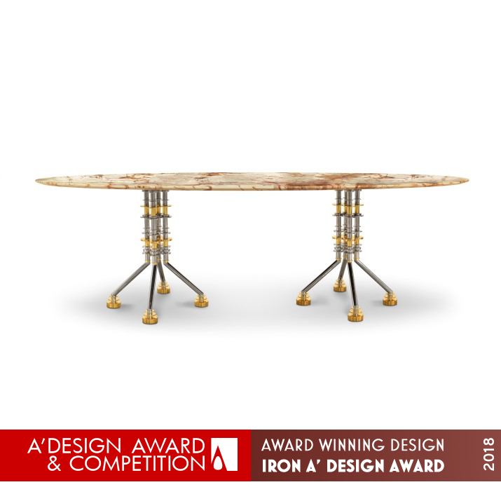 OPERATION / FLOW / INTERACTION: The metal finishes and marble top can be adapted to the client needs. It's a heavy piece to handle alone and should be handled with care both in transport and in assemblage due to the fragile nature of all marbles with large scales. It's not a table just to lay around your items in it, it's a table that makes a futuristic statement in any interior it will be in.