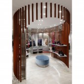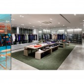 UNIQUE PROPERTIES / PROJECT DESCRIPTION: BEAUTY and YOUTH is a "select shop" that has a wide variety of items from famous brands all around the world. The layout is divided by the special material and colors which not only act as a guide, but also creates a distinctive flow of motion and feeling along with the flow of people and customers through the L shape of the store as the public passage is a part of the design. Between each area, hologram glass films were used to create an unique accent for the store.