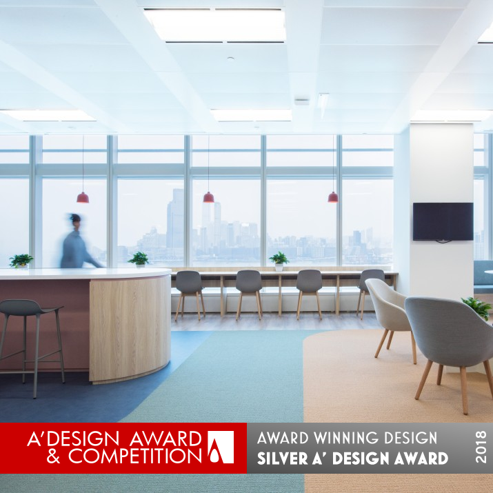 OPERATION / FLOW / INTERACTION: The pantry space is designed as the social heart of the workplace, where employees can socialise with each other for informal meetings using the central island table, the diner style carts, as well as a 30 metres long counter along the panoramic windows that faces the Victoria Harbour.