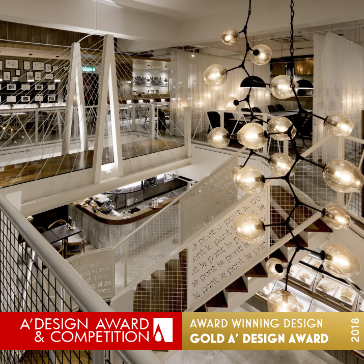 UNIQUE PROPERTIES / PROJECT DESCRIPTION: At the entrance, visitors may find a white bridge and staircases in the void. The all contents such as bakery, lounge, coffee bar, and restaurant, are placed and connected to each other by surrounding the bridge and staircases. Not dividing the areas to smaller, but Kamiodesign arranged seating layouts and provided an open space through the 1st & 2nd floors. Spontaneous communications may occur between the guests by facing to each other. This is a place to connect and to share.