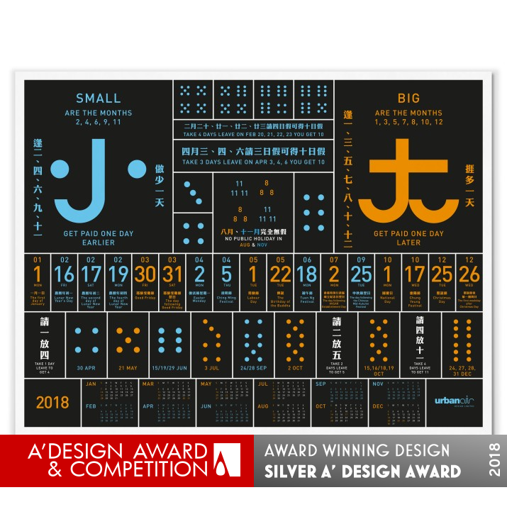UNIQUE PROPERTIES / PROJECT DESCRIPTION: We had been taught counting months on knuckles by Math teacher where we were children. Therefore we combine it with the Sic bo concept which appears on gambling table. We understood employees concerns about when they get paid and how to take the longest holidays with the least annual leave as we are employees too. Therefore we tailor made the 2018 calendar for them to carry out holiday maximization by combining the public holidays with their limited annual holidays through the year.