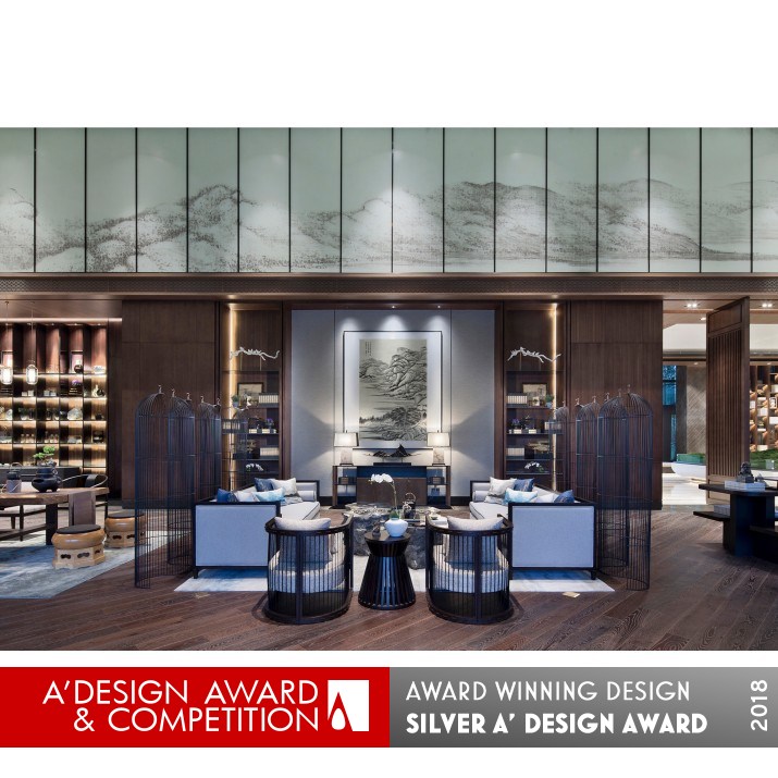 OPERATION / FLOW / INTERACTION: The birdcage element in the traditional Chinese culture has been refined and been included into the Chinese style landscape. The mountain scenery delights the birds, whose singing makes the mountain more secluded. While the environment is permeated with scholarly atmosphere, the natural vitality cheers the heart up and pleases the feelings. The furnishings are exquisite in every detail with rich cultural implications, allowing repeated deliberation.