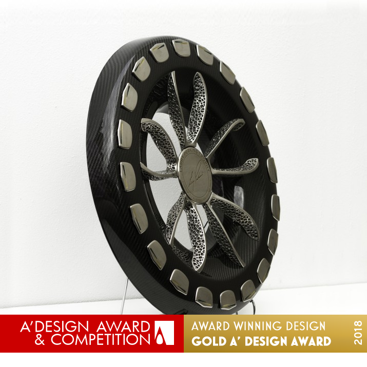 INSPIRATION: The design honours the continuing legacy to motorsport by Larry Perkins. The Formula 1 Australian Grand Prix Corporation commissioned the design of trophy to represent Perkins contributions to engineering in Formula 1 and Australian touring cars now called Supercars Championship. The Carbon Fiber component links both categories of motorsport and Titanium 3d printed spokes and nameplates are generated through algorithms, one agent based and two form finding that create their form respectively