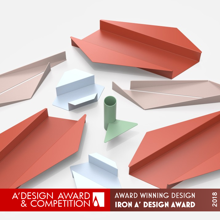 CHALLENGE: The folding paper is constructed by the concept of continuous rectangle, making a three-dimensional model on the basis of geometric plane, and also can be arranged that users can do it by themselves whatever they want. Causing the multiple uses of the simple geometry. Also, the trenches and platforms presented by the folding of the paper can not only be wall-supported items, but also create new space for storage and can therefore be easily removed by using handles.