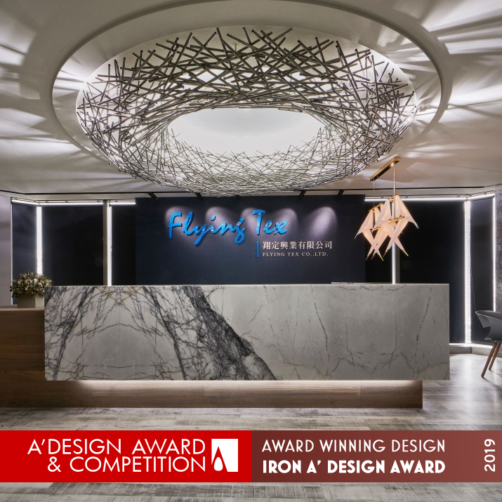 INSPIRATION: The corporate headquarter of Flying tex., a Taiwanese trade company of functional fabrics, is located in Taipei. The design of the interior came from the Chinese name of the company. "Hsiang" means "Flight", and "Ting" means "Stability" in Chinese respectively, and therefore the concept of "Nest" was conceived for the spatial semantics, while also symbolizing the headquarter being "Home" and "Nesting Place", as well as the organizational discipline of migrating birds mirroring corporate culture.