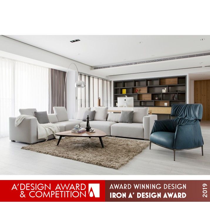 The study room adopted open-style layout, extended from the living room to form spacious and comfortable resting space. The linear chandelier in the dining room and the large geometric wall style put together by hand ingeniously corresponds each other, simple and warm colored original wood long table is used, where the different arrangement allow the dining environment with more power. The bedroom and bathroom use dignified grey color tone to create the exquisite and pleasing sleeping space. The living room introduces natural light, which is decorated with warm wooden texture to correspond with the overall leisurely living sentiment.