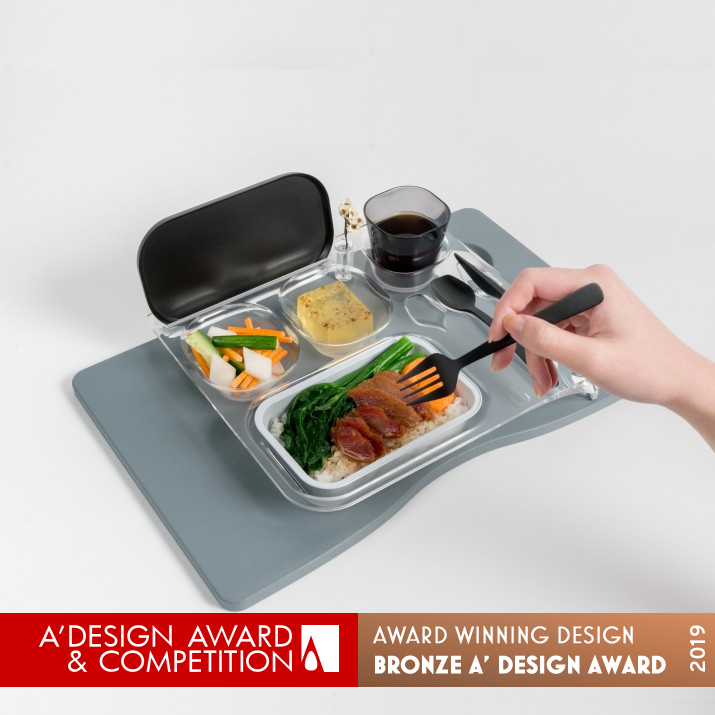By reducing the single-use packaging and material used for the tray, this simple structure can provide a clear using flow without struggling to place the plastic packaging and generate a better dining experience.