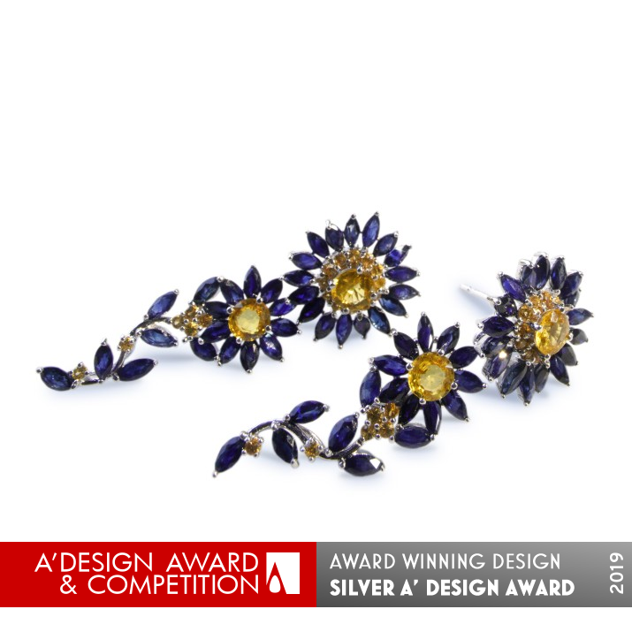 I am in awe of this stunning piece of jewelry! The Blue Daisy earrings are truly a work of art, and I'm so glad that it was honored with an A' Design Award. Not only is the overall look feminine and elegant, but it is also highly versatile. I love the idea of being able to wear it as dangling earrings, a stud only, or with one earring as a stud and the other as a dangle. The choice of blue sapphire petals and yellow sapphires for the center is perfect since the contrast creates an eye-catching effect. Plus, the petals being unequal makes it look like the design is floating. This truly is a remarkable piece of jewelry!