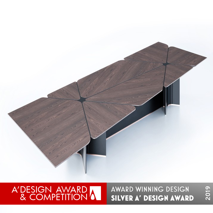 OPERATION / FLOW / INTERACTION: This variability ability enables all kinds of material to be used in a hassle-free harmony. Such flexibility produces a table in different sizes using standard parts that allow for construction. Flexible materials and dimensional construction create an artistic piece of furniture with Patchwork Table's astonishing design line. This variable structure and flexible fabrication of dimension make it meet all needs both as a meeting table and a dining table.