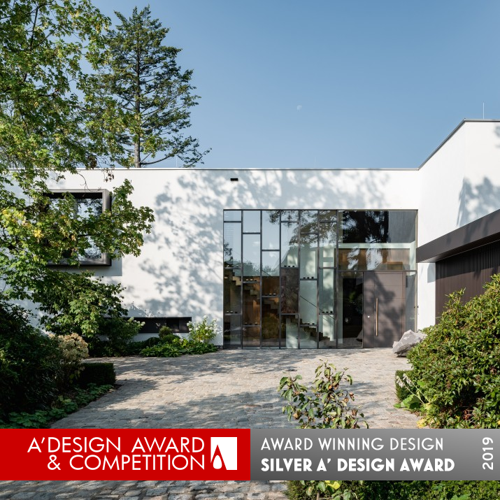 PRODUCTION / REALIZATION TECHNOLOGY: The reinforced concrete structure of the house is highly insulated and clad with plaster walls and rough stone. Huge steel beams enable large cantilevered roofs.