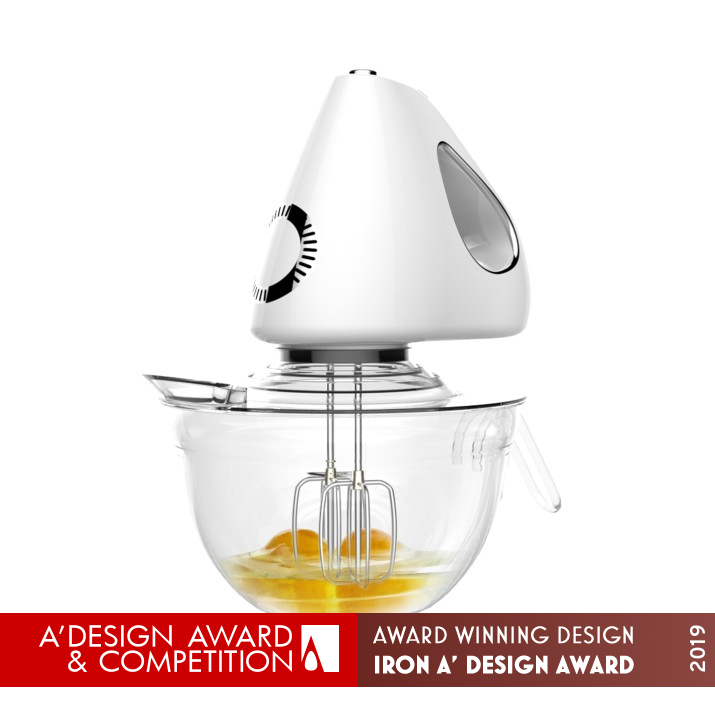 INSPIRATION: It has a highend exquisite shape and color, which give a comfortable visual and tactile experience. The design inspiration of the product comes from the growing needs of people. When making a cake, the liquid needs to be whipped as material. In the process of rotating and stirring, the liquid can easily splash outside, causing unnecessary waste and trouble .On the basic of the original shape, we add a transparent anti splash lid , so that people use it more convenient.