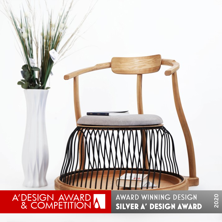 INSPIRATION: The design inspiration obtained from the acorn which combines the two materials of solid wood and metal to design a multifunctional leisure seat. The seat armrests and line of backrest meet the needs of the comfort of sitting, allowing the seat to present diverse functions to meet the needs of modern people relaxation in their spare time.
