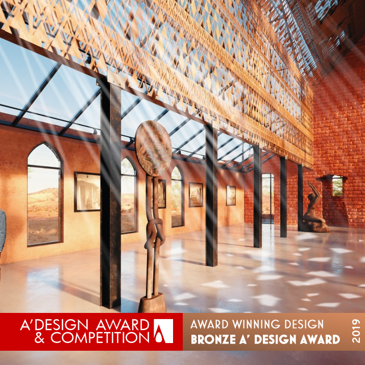 INSPIRATION: The outstanding burnt brick church ruins stand proudly within perimeters of a rich historic site of the 19th century capital of the Bangwato tribe that was led by the royal king Khama III- one of the most powerful Tswana kings. The old church ruins and other remaining artifacts from the settlement tell the story of the old capital. Built in 1891 by the London Missionary Society, it was later abandoned after the royal King Khama III relocated his capital to another prosperous site after the current one had suffered from lack of resources to sustain the capital.The church was then left to the devices of nature, a slow process of deterioration led to its dilapidated state. However the whole site area was then gazette as a national monument in 1938 in order to be protected and preserved. Today it remains as a famous tourist site in the region and now considers proposals for a new museum development. So the architect designed a museum and exhibition space that reflect on the old capitals image. By working with the existing ruins, it was essential not to override them but rather create a new life around them. The designs intentions was to preserve the historical heritage of the ruins by adding a contemporary feel and simultaneously breathing new life into it, therefore highlighting the contrast between old and new.
