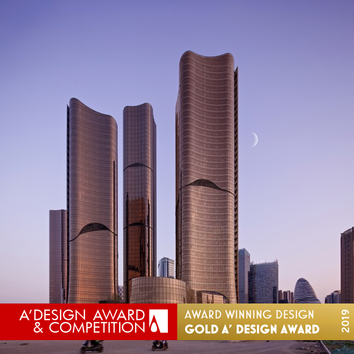UNIQUE PROPERTIES / PROJECT DESCRIPTION: The project consists of four high-rise Grade A office towers including a corporate headquarters, a high-rise apartment building and a multi-functional commercial & convention complex. Podiums contain retail, F&B, banks and entertainment. The iconic building masses can be perceived as a complex of integrity, a staid image appropriate for a Corporate headquarters intended as a predominant commercial landmark of Dawangjing area as well as Beijing City.’