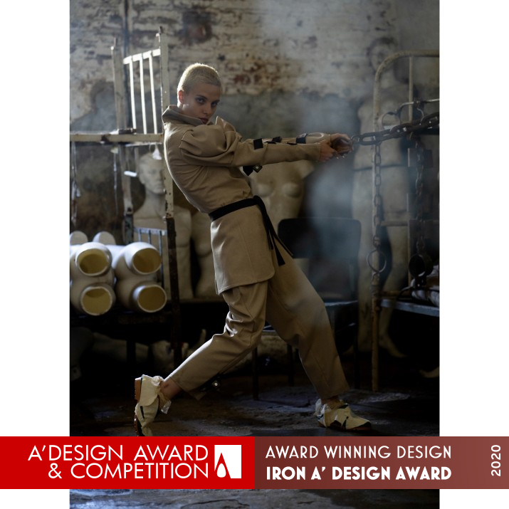 INSPIRATION: It may seem like a paradox, but the whole concept is base on the positive experience of unlocking the negative emotions we do not know in the conscious way that we exist. For this collection, I spent a day and a night in the room where our greatest politician, Marshal Antonescu, was imprisoned, and whole this experience taught me to describe the real human's needs for being a free and untrained person. I entered Jilava Prison space like a humble servant, and I came out like a real winner.