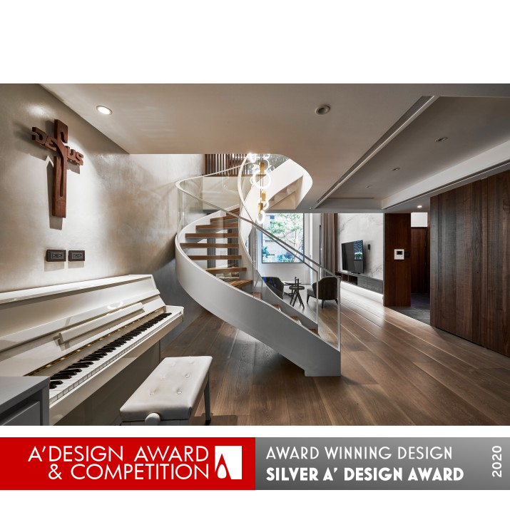 PRODUCTION / REALIZATION TECHNOLOGY: The staircase plays the role of how to connect all the floors perfectly. Designer decides to tear down the original and traditional staircase and designs a new spiral staircase to create a refreshing space decoration, meanwhile, the styles of the spiral staircases change and echo with the designs on different floors. In addition, there are LED lamps mounted on the back sides of stairs, which use the soft and warm light to decorate the spaces between stairs and make the entire structure look light visually.