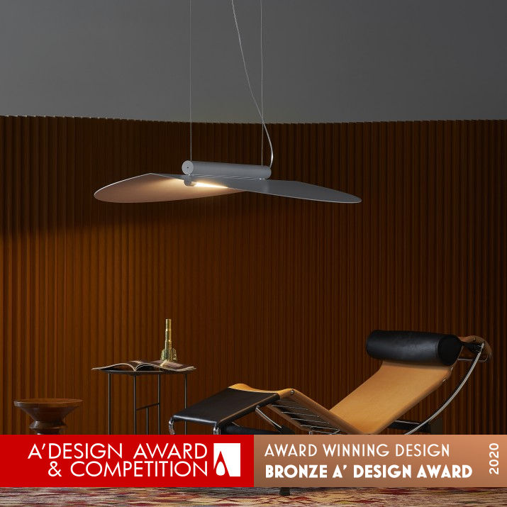 UNIQUE PROPERTIES / PROJECT DESCRIPTION: Ascetic, light and minimalist luminaire, floating in space and only with a few flexes creates a poetic, gentle and dynamic mood and fills surroundings with beautiful and warm light. The shade floats between two cylindrical parts and makes a clearance between elements that creates a beautiful tension.