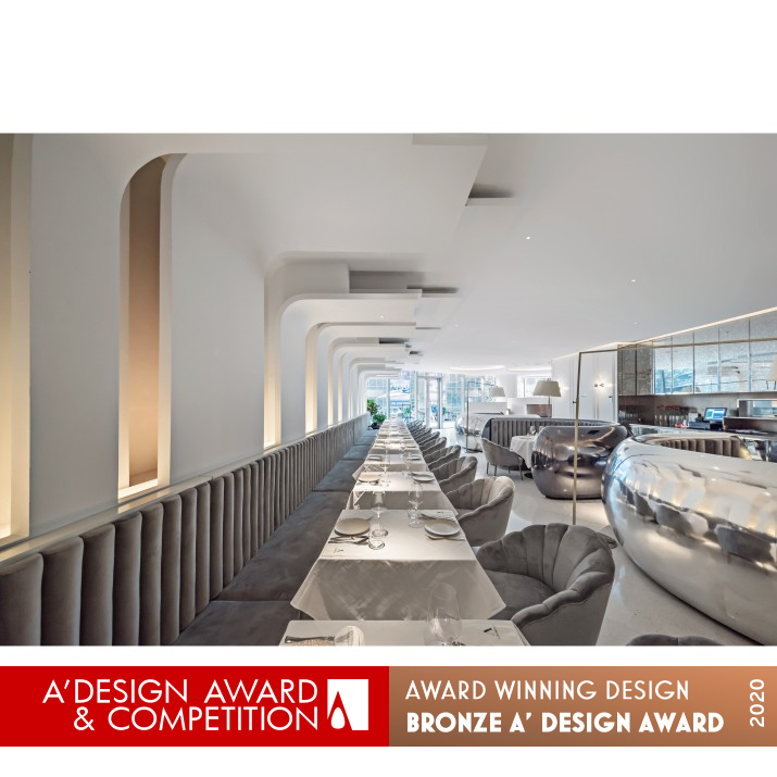 OPERATION / FLOW / INTERACTION: This case draws on the essence of L' Atelier de Joel Rubuchon and combining high saturation color with the concept of art decoration. The small round table is surrounded by a semicircle sofa, with clear priorities and full of changes. When the lights rotate, the whole space looks like a huge colored glaze lamp hanging with glittering view and Changing magnificence.