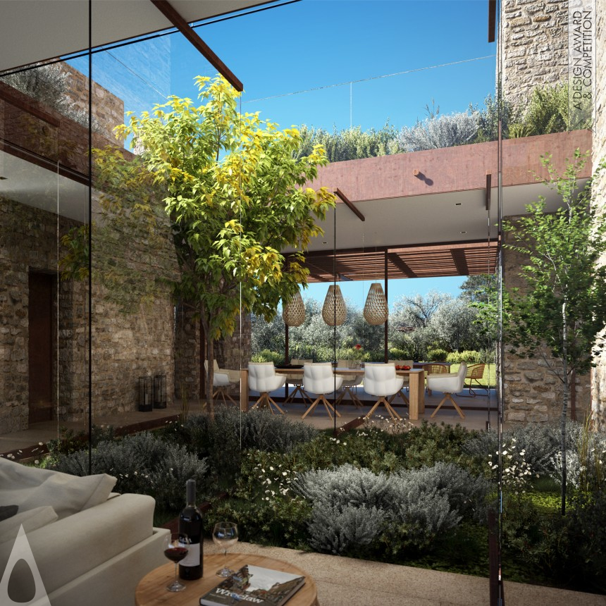 Alluding to the structure of a typical Mani village, the concept is conceived as a series of individual stone fragments revolving around the atrium, entrance and living spaces. The rough volumes of the residence open a dialogue with their natural surroundings, while the rhythm of their openings either ensures privacy or invites in panoramic views of the horizon, constructing a direct experience of successive and diverse narratives. The Villa is located in Navarino Residences, a collection of luxury villas for private ownership at the heart of Navarino Dunes resort.