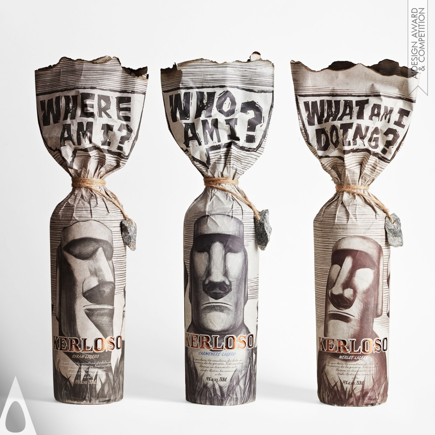 A red wine from Chile, Kerloso comes from the Spanish "mystery of the magical colossus". In the wine label of this wine, it depicts what the navigators saw when they first landed on the island. The wrapping paper of the bottle is made of natural imitation rice paper. The questions raised by the stone statue add a sense of mystery and antiquity. The top of the wrapping paper is formed by flame burning. Each burn mark is unique and symbolizes a lost civilization.