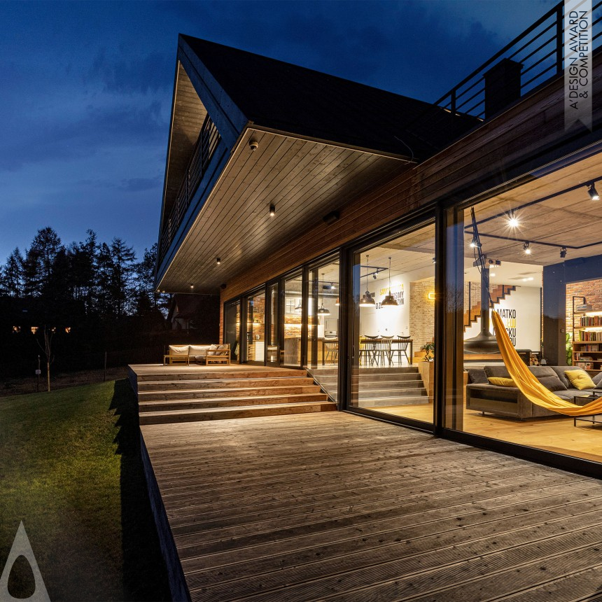 The Lesser Polish Eaves Cottage is a house which was inspired by the Polish wooden arcade architecture. The search for regional features characteristic for single-family housing led designer to discover forgotten traditional eaves houses of the region. The design was created in order to accommodate a 4-person family space, located on the unusual long and narrow plot of irregular shape. There were separated as many as five different levels, legally falling within the definition of a two-story building.