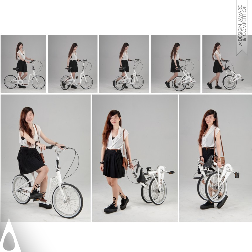 The concept is the use of better structure and change handle place to reduce the hardness of riding on and the high weight of the folding. This is a solution that Citybike user request can be solved. The main frame with the diamond shape and the principle of the gravitational field equilibrium no need to wear all the bike weight on and folded in 2 seconds. Upon opening, just tilt, gravity would give strength to help expand. Slider after folding size is a suitcase size and handlebars can be used as drag handle. Diamond structure help the front wheel steady on it fixed.