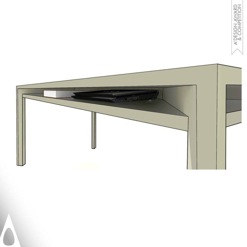 Tavolo Livelli is about creating useful space in forgotten places. Tavolo Livelli is a layered table, a table with two tabletops. The space between the two tabletops can be used to store a laptop, books, magazines, etc. The diagonally placed legs create a beautifully fading shadow between the two tabletops, playing with your perception. All X and Y surfaces - tabletops and legs - have the same thickness.
