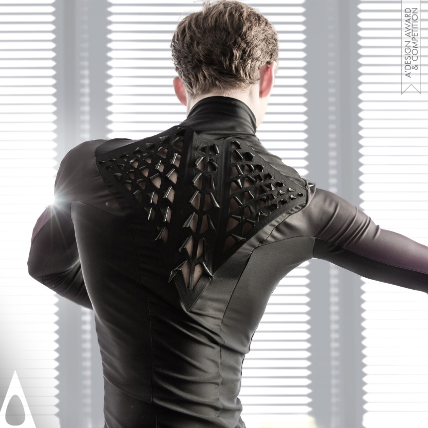 The bioLogic team explored how bacterial properties can be applied to fabric and formed into living interfaces between body and environment. They found novel ways of using Natto bacteria, which move in response to humidity change. The team harvested Natto cells and applied them to fabric with custom 3D printers.The cell-infused fabric was used to make sport garments. As fabric in the suit reacts to perspiration, tiny vents over bodily heat zones open and close allowing for rapid cooling. In fall 2015, these suits featured in a live ballet performance.
