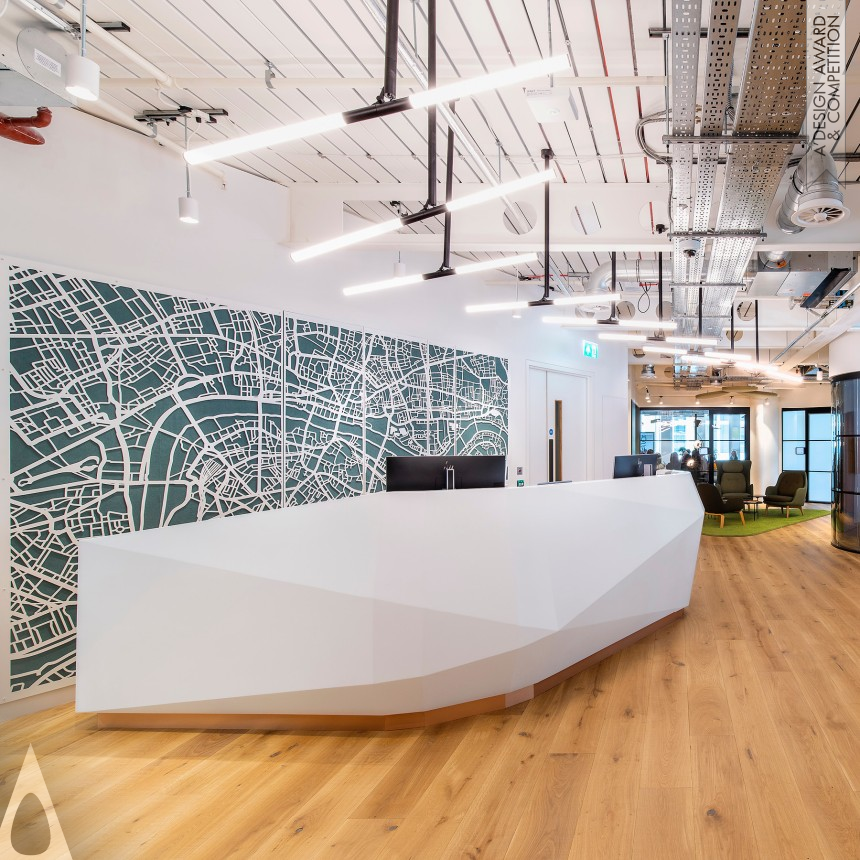 Designed according to the IWBI‘s WELL Building Standard, the headquarters of HB Reavis UK is aimed at promoting a project-based work, which encourages the break down of departmental silos and makes working across different teams simpler and more accessible. Following the WELL Building Standard, the workplace design is also aimed to address the health issues associated with modern offices, such as lack of mobility, bad lighting, poor air quality, limited food choices, and stress.